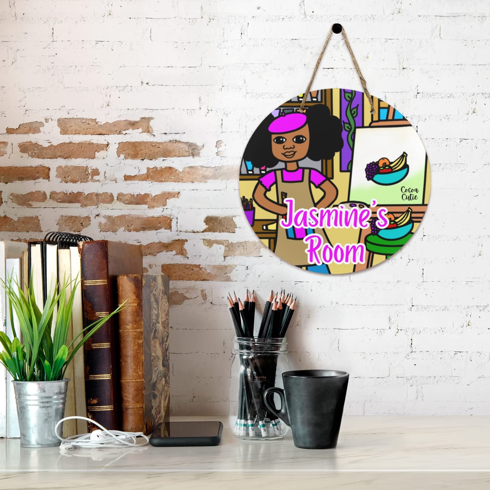 Cocoa Cutie Artist Round Wooden Wall Door Sign 11.8''