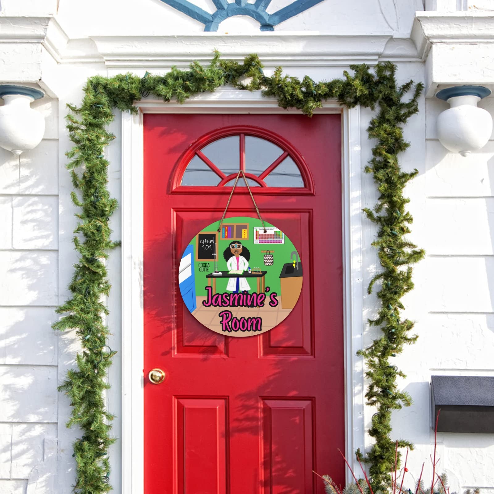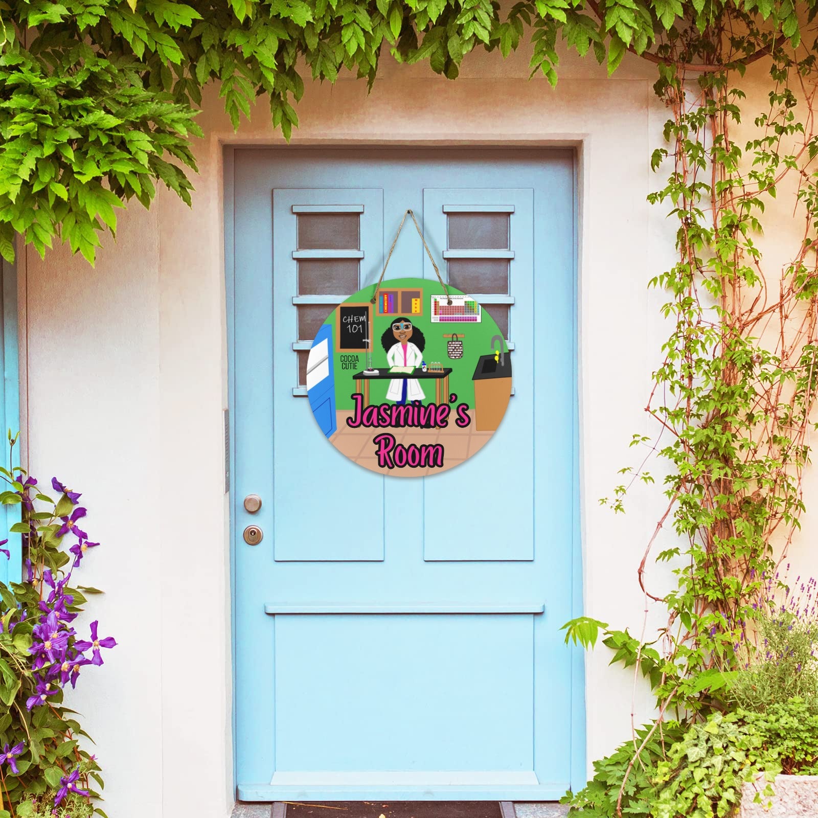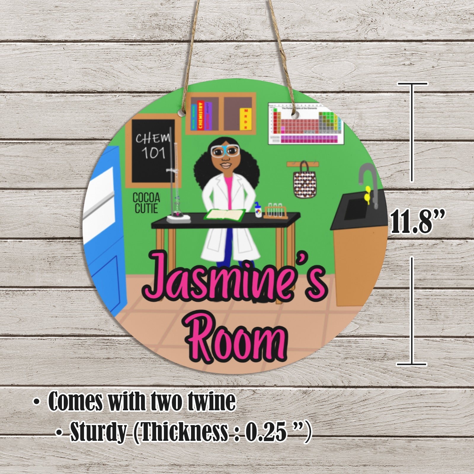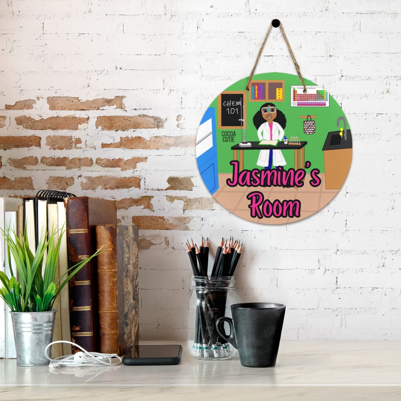 Spark curiosity and creativity with the Personalized Cocoa Cutie Chemist Girl Round Wooden Wall Door Sign. This 11.8-inch playful sign brings a fun, science-inspired vibe to any room, perfect for budding young scientists. Add a colorful and imaginative touch to bedrooms or play areas that encourages discovery and learning every day.