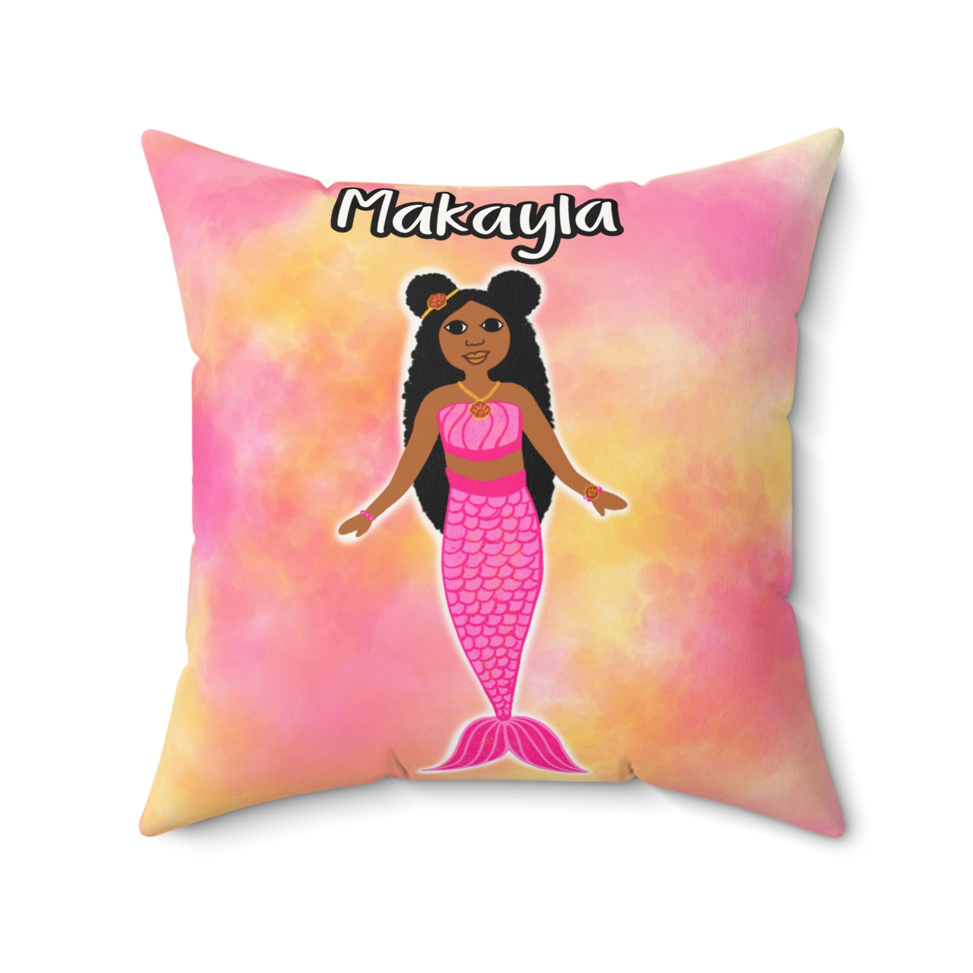 Cocoa Cutie Mermaid PINK Affirmation Pillow- Girl (PICK SKIN TONE)