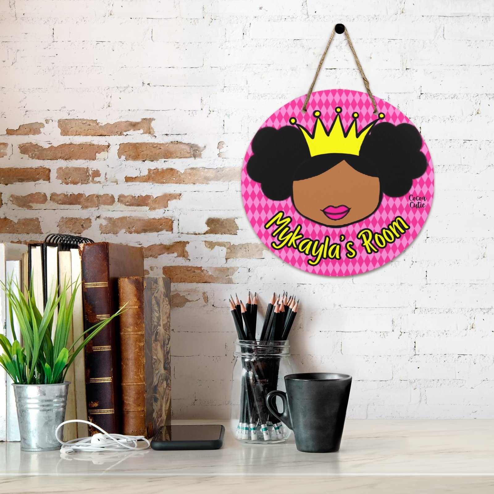 Add a touch of royalty to your space with the Personalized Cocoa Cutie Princess Vibes Round Wooden Wall Door Sign. At 11.8 inches, this wooden sign offers a charming and personalized way to express your inner princess. Perfect for bedrooms, nurseries, or any room that needs a regal accent, it brings a unique blend of warmth and style. Celebrate your confidence and grace daily with a beautiful, handcrafted sign that truly stands out.